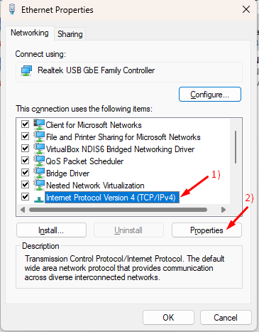 6. Seleccionar "Internet Protocol Version 4 (TCP/Ipv4)" y clicar en "Propiedades".
