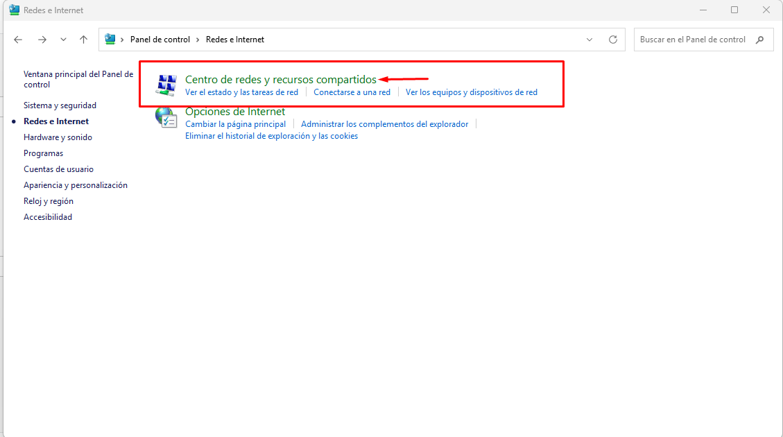 4. En el panel de la izquierda, seleccionar "Cambiar configuración del adaptador".