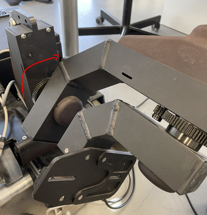 - Con el robot apagado, sin la cámara puesta, tumbar la muñeca hasta tener visibilidad sobre los engranajes del motor 2.