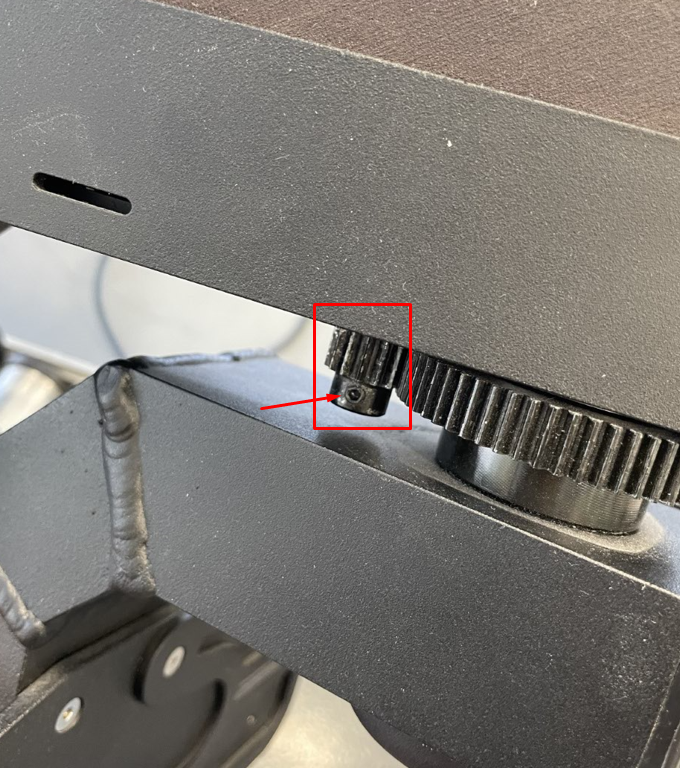 - Rotar la articulación sobre la que se posa la cámara hasta ver el prisionero del engranaje del motor.